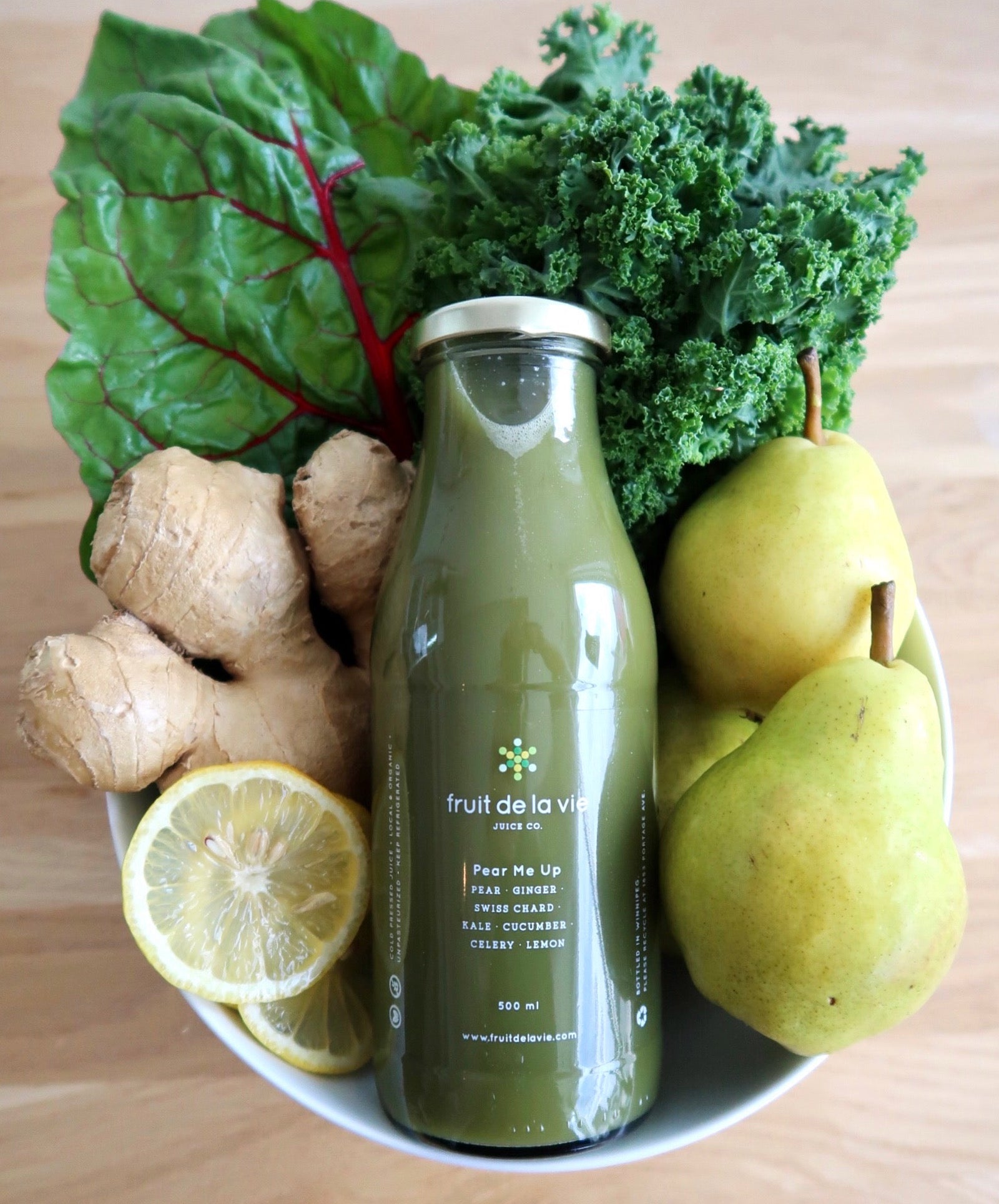 PEAR, GINGER, SWISS CHARD, KALE, CUCUMBER, CELERY, LEMON